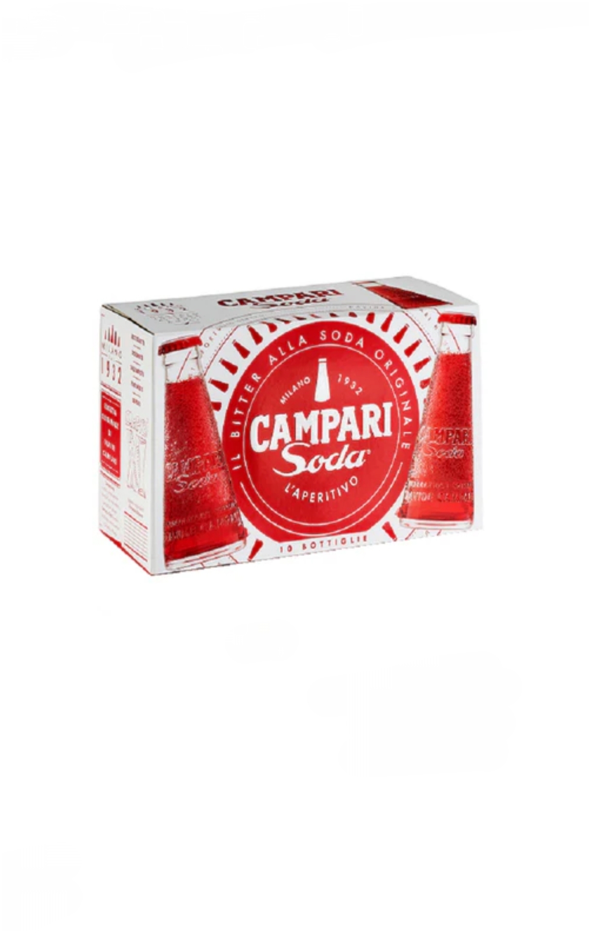 Incontournable, le Campari Soda est le premier apéritif “monodose” au monde. Présenté dans sa célèbre petite bouteille conique en verre givré, il incarne l’élégance milanaise à l’état pur.