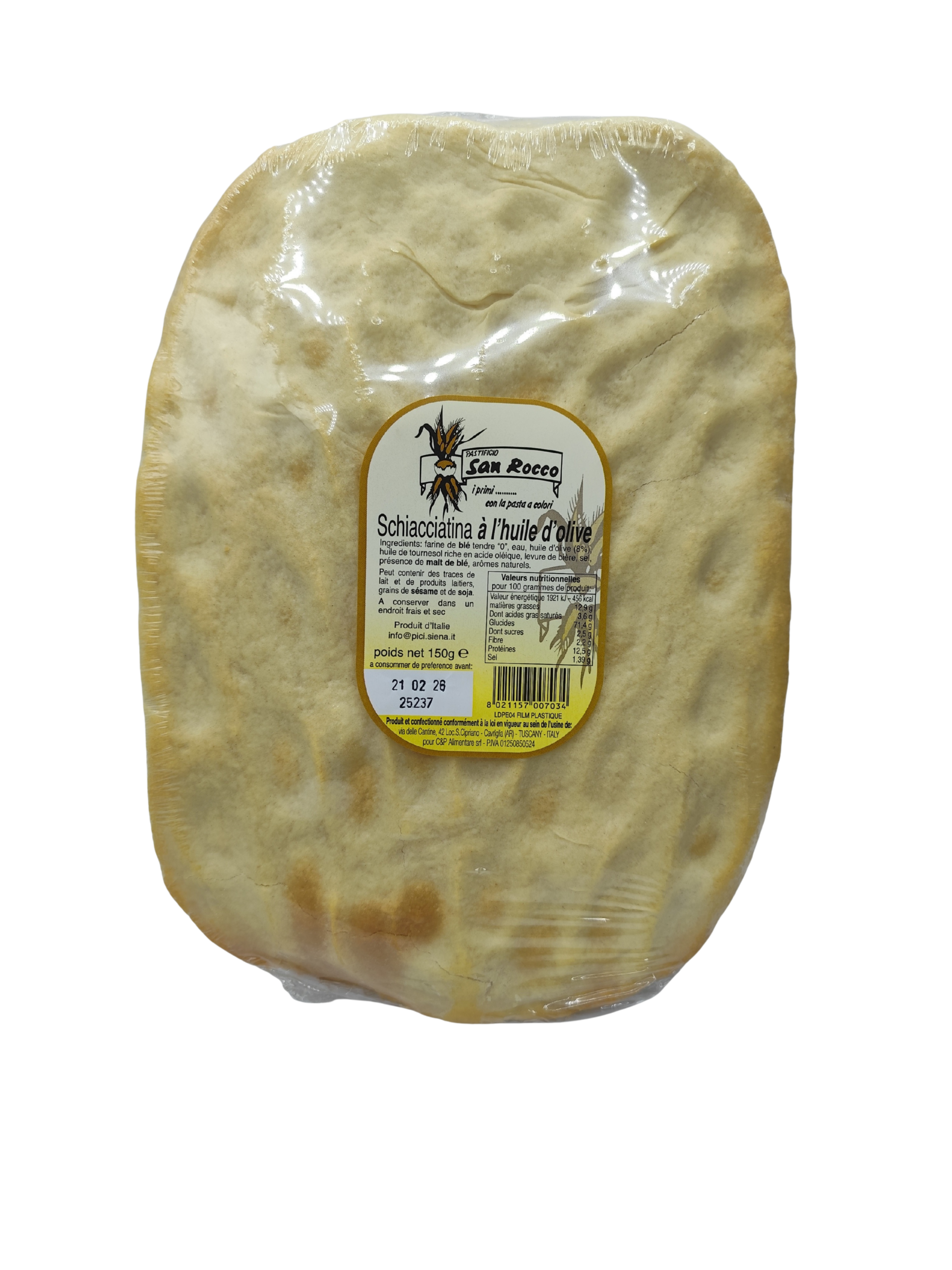 Soyez le premier à laisser votre avis sur “SCHIACCIATINA A’ L’HUILE D’OLIVE – SAN ROCCO 150GR”
